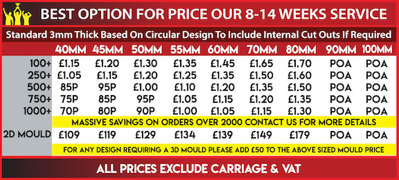 we offer for you two option on timescales the above table are priced for our 8-14 week service and then see below prices for our 3-5 week express service